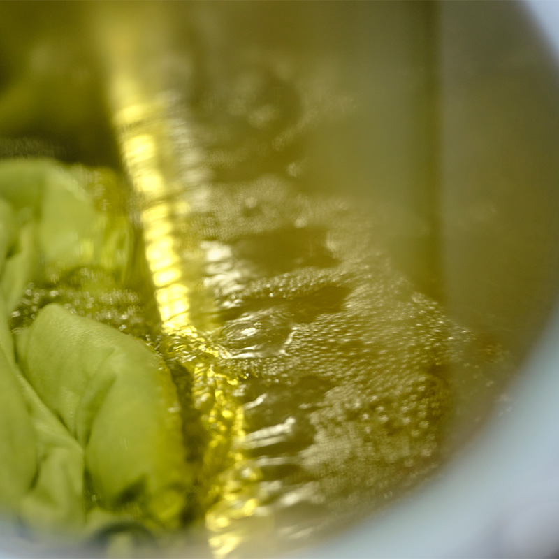 這個細膩的工序既保留了靛藍的深度,也讓黃色鮮明綻放,形成無可比擬的專屬色調。